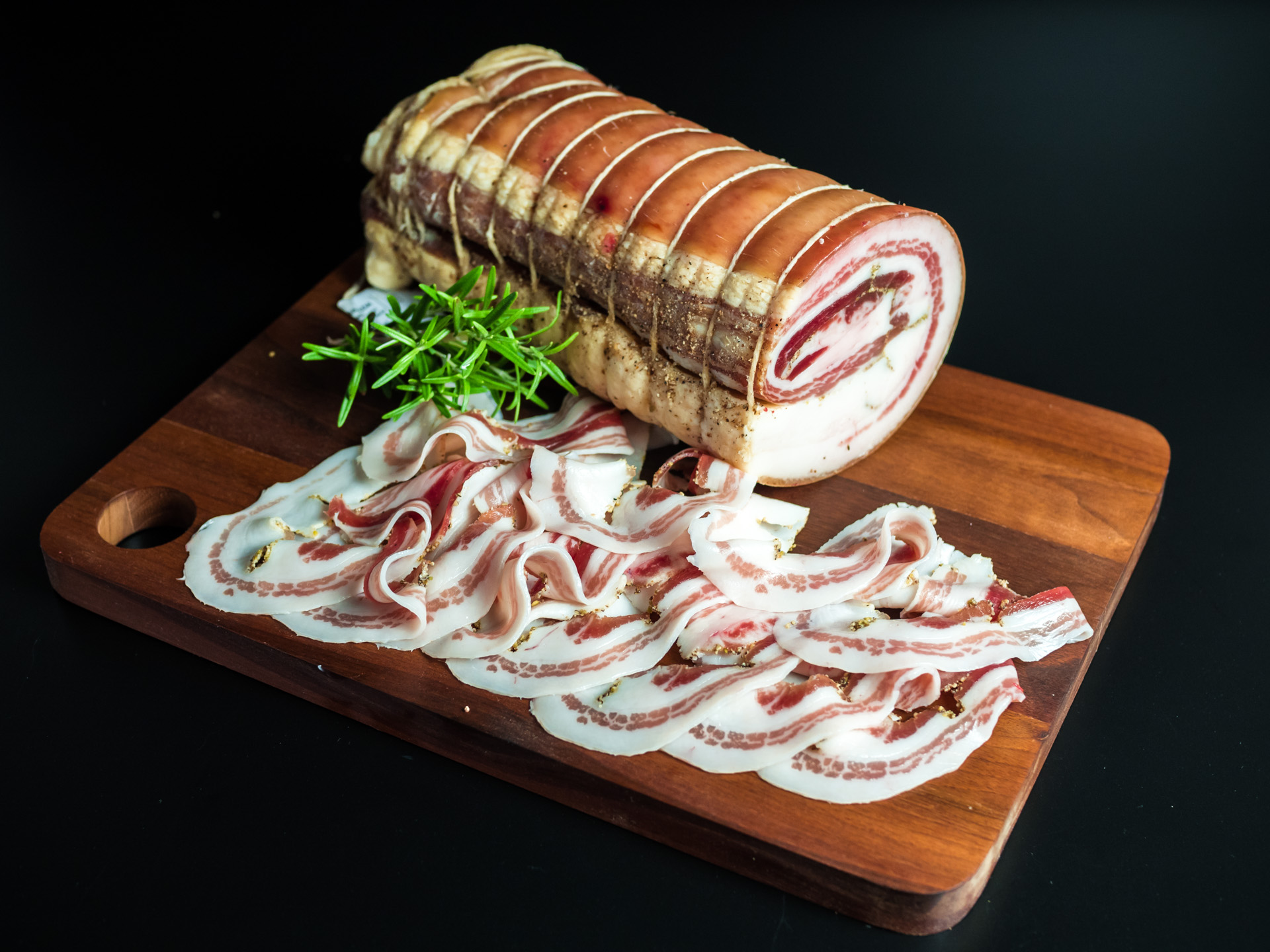 Pancetta artigianale di maialino italiano razza Nero